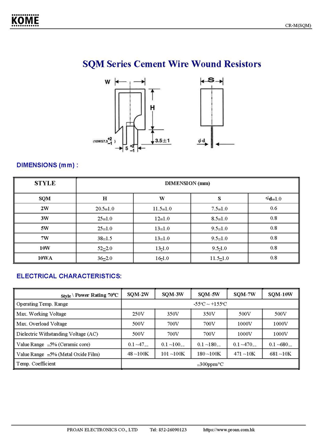 KOME > THROUGH HOLE RESISTORS > SQM CEMENT RESISTORS Download