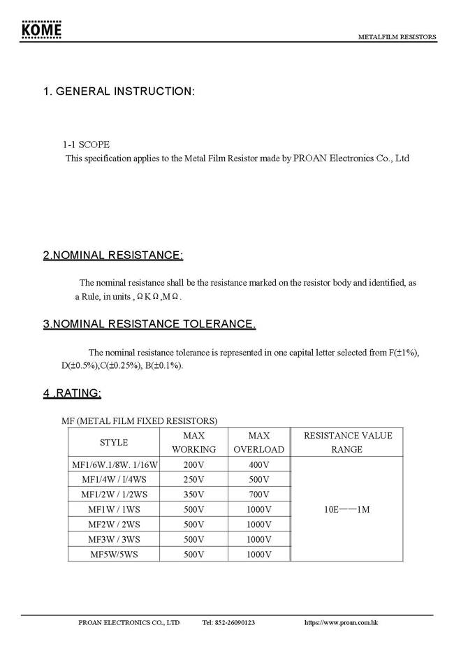 KOME > THROUGH HOLE RESISTORS > KMF—MATEL FILM RESISTOR Download